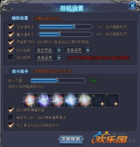 自动挂机方式:开启自动挂机后,会自动锁定身边最近的一只怪并展开攻击,杀死怪物后自动攻击一下只。如何设置自动挂机:通过快捷键Z或点击主界面下方的挂机设置按钮,就可以打开挂机设置界面。通过在选项卡上打钩,以及在带有下划线的按钮中进行选择,都可以激活选项;