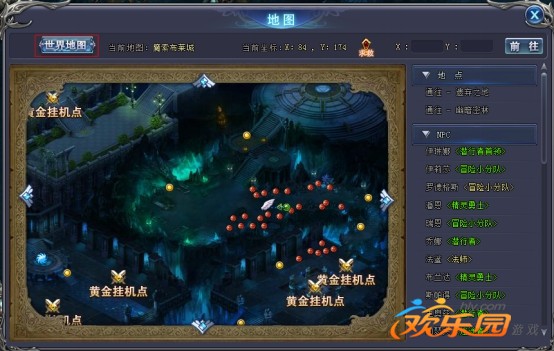 小地图界面的右边会有当前地图的NPC、怪物、传送点名称,