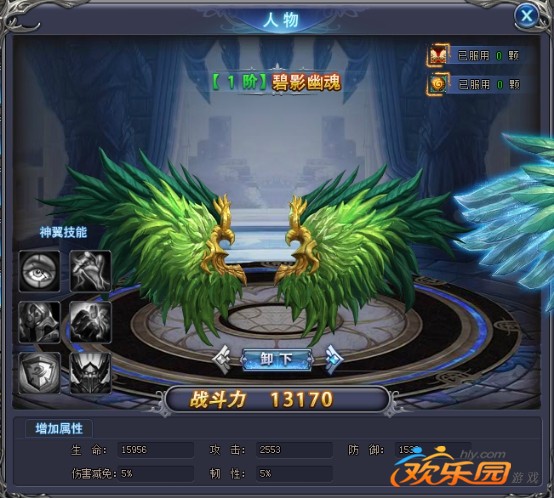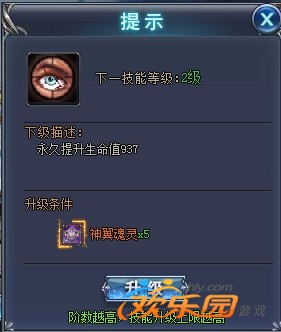 神翼技能可提升等级,需要消耗道具“神翼魂灵“