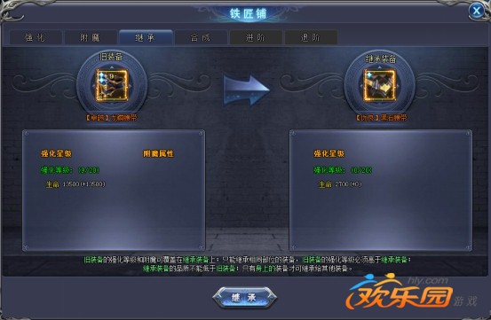英雄领主中玩家淘汰的装备不需要再丢弃或出售了,装备继承功能可以将玩家淘汰的装备继承到全新的