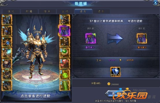 英雄领主中玩家可以将低阶装备配合一定数量的灵魂结晶进行装备升阶